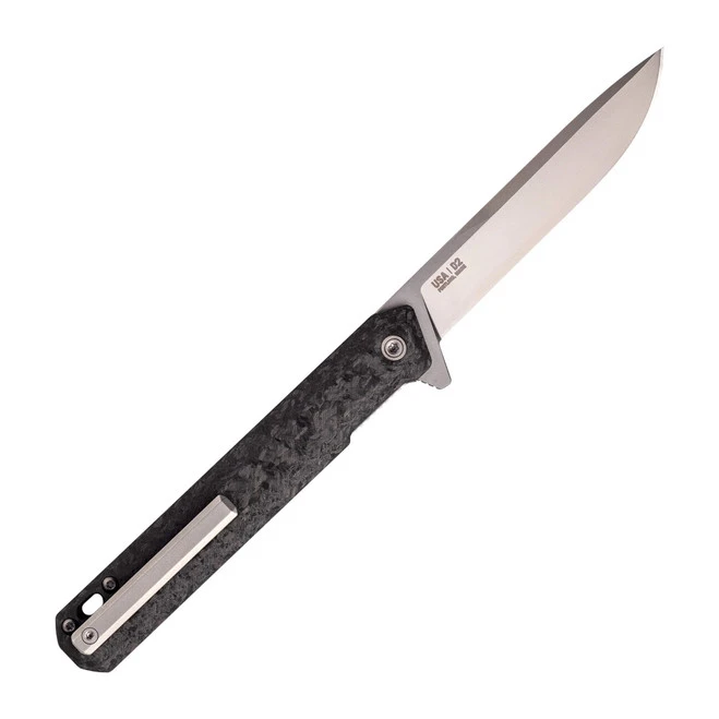 CJRB Crag Folding Knife Black Carbon Fiber Handle AR-RPM9 Cleaver Plain Black Blade CJ1904-BCF